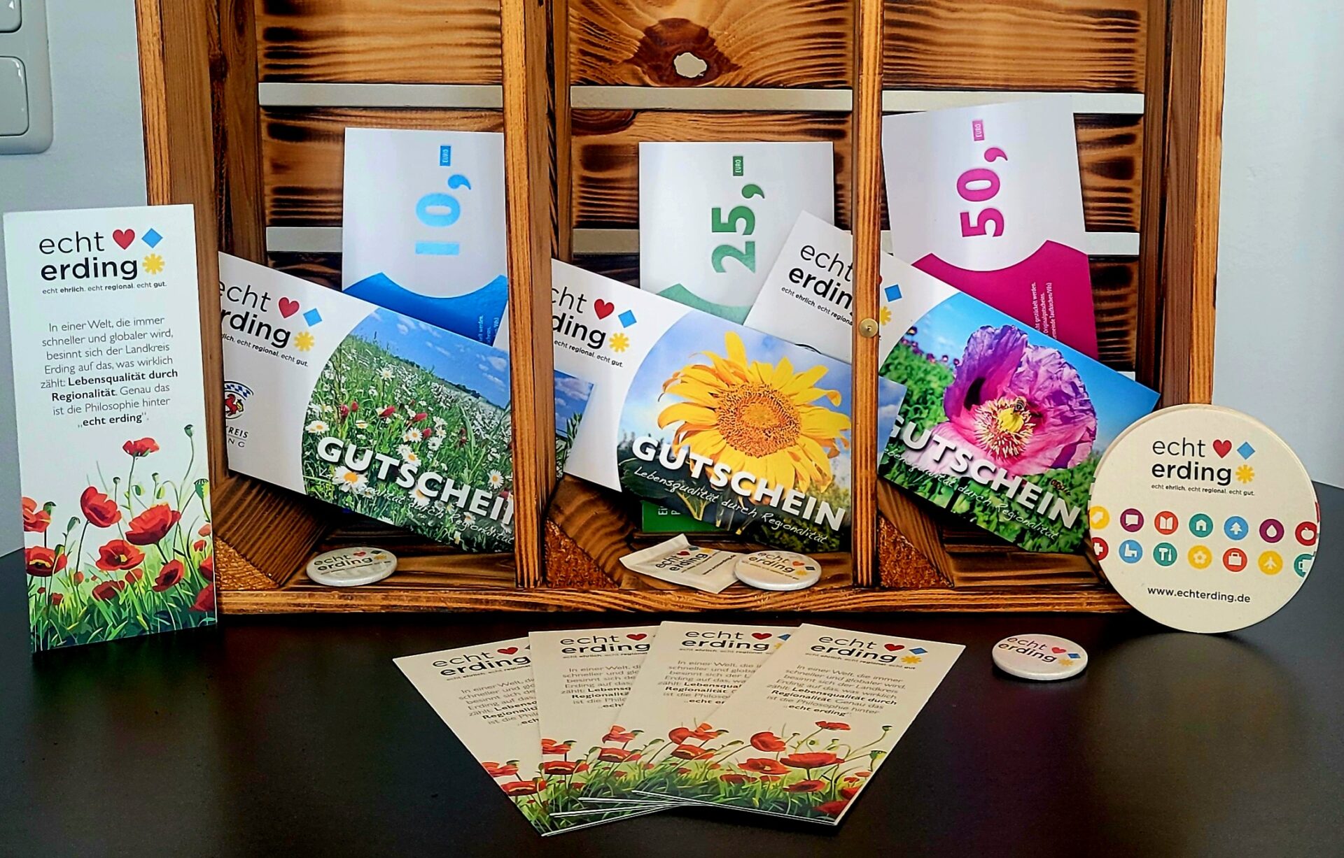 Die Landkreismarke „echt erding“ freut sich, ihre Gutscheinaktion bekannt zu geben, die ab sofort startet. Mit dieser Aktion sollen die regionalen Anbieter im Landkreis Erding gestärkt und die Attraktivität unserer lokalen Angebote aus dem Landkreis Erding um den Vertrieb regionale Waren und Dienstleistungen weiter gefördert werden.